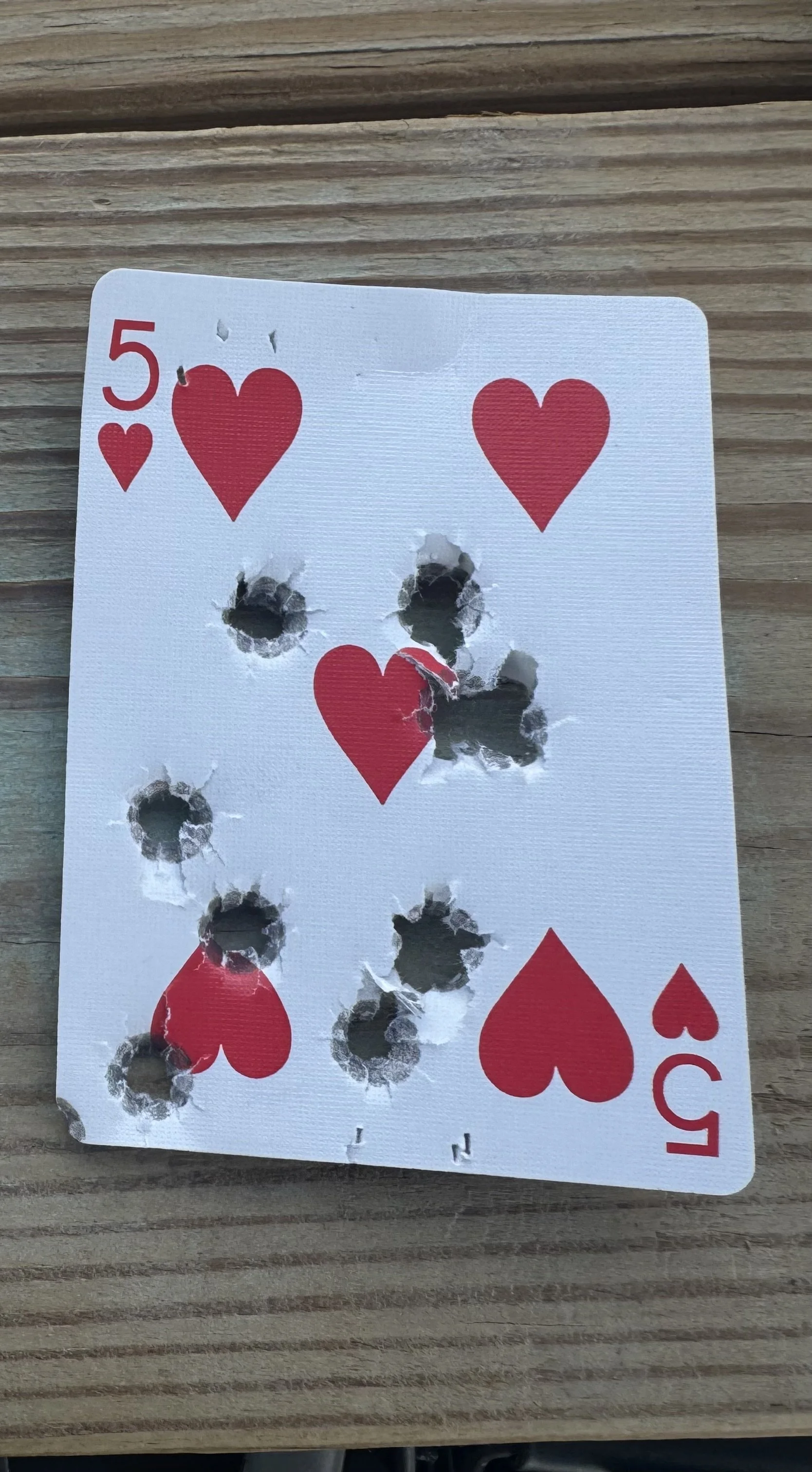 From concealment, attempting 10 shots in 5 seconds at 5 yards at a standard size playing card. The ‘normal’ drill is 5 shots in 5 seconds at 5 yards, shot cold from concealment.