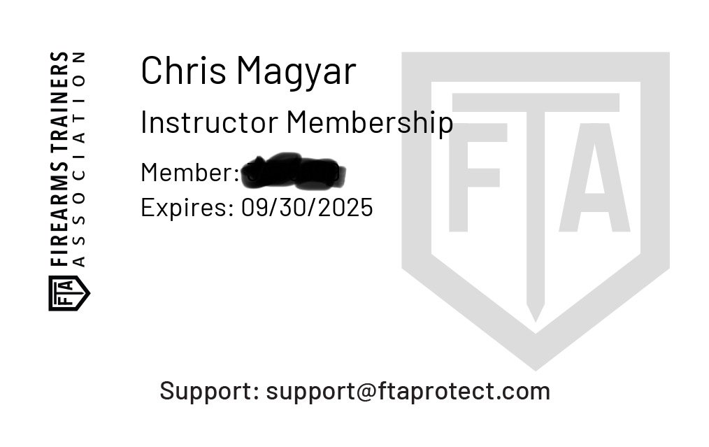 Insured by FTAProtect (Firearms Trainers Association)